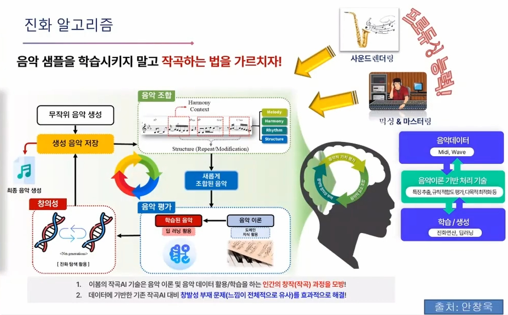 이봄-ot a 광주과학기술원 (GIST) egyik professzora, 안창목 fejlesztette; Koreában gyakran a „hazai, korai/első” kompozíciós AI-modellek között említik. Nagyon sok művet készített, és több helyen kap figyelmet. 이봄 műve is elhangzott az 예술의 전당 színpadán – a robotos fellépés után, a következő évben.